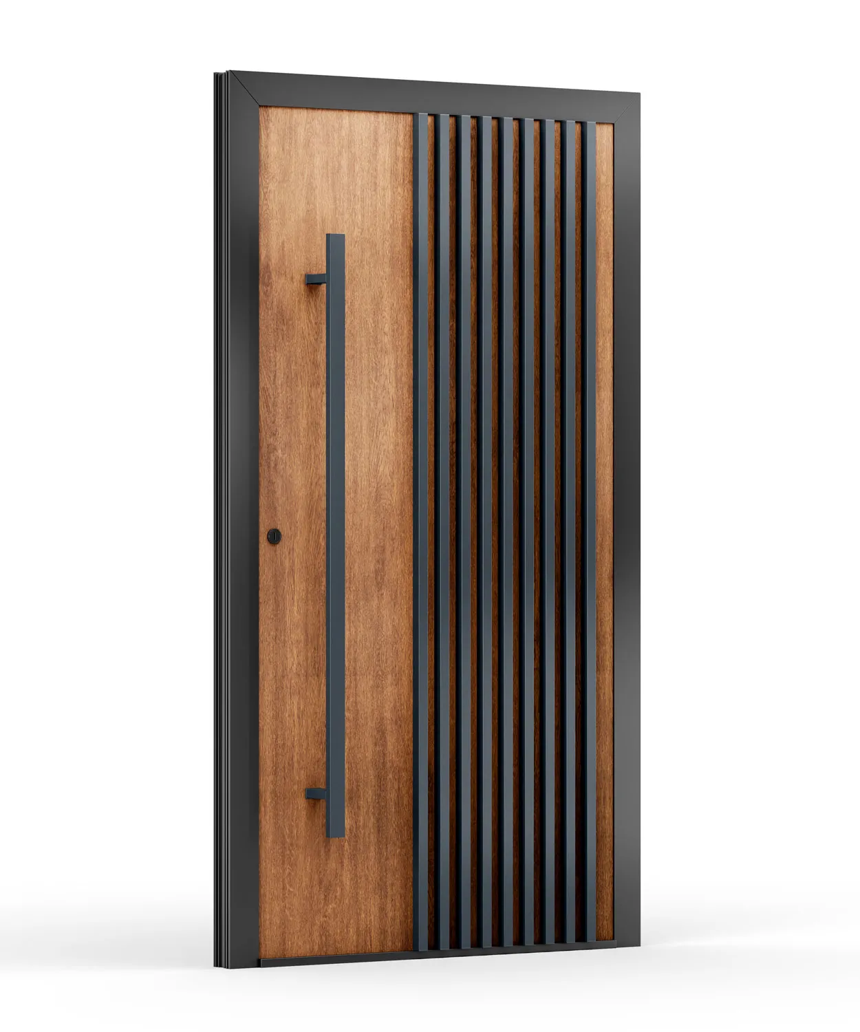 A partir du 2 avril de cette année, l'offre de DRUTEX comprend 100 nouveaux modèles de portes en aluminium fabriquées avec le système MB-86N SI à haut rendement énergétique. Les portes sont conçues pour une utilisation extérieure dans les bâtiments résidentiels et publics. Les nouveaux modèles se distinguent par leur design intéressant, leur haute qualité et leurs très bons paramètres d'isolation thermique allant jusqu'à Ud = 0,83 W(m2k).