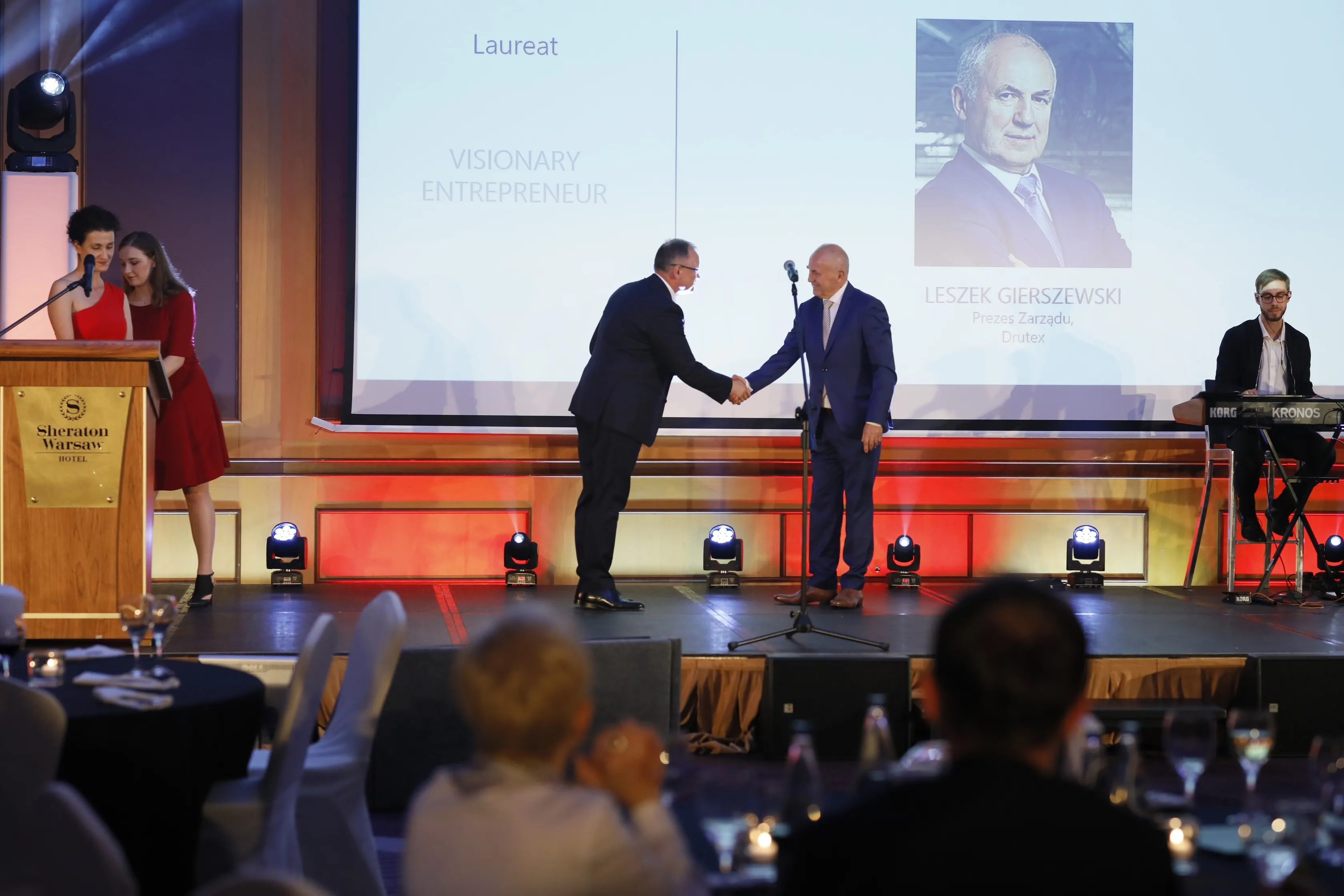 Leszek Gierszewski, fondateur et président de DRUTEX, le premier fabricant européen de menuiseries de fenêtres, a reçu le prix de la catégorie Visionary Entrepreneur. Il a été récompensé par le jury pour la mise en œuvre audacieuse, efficace et systématique de sa vision du développement d'une entreprise innovante, qui conquiert des marchés avec dynamisme dans le monde entier.