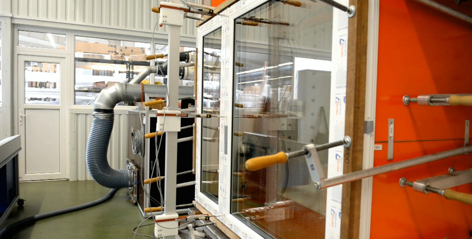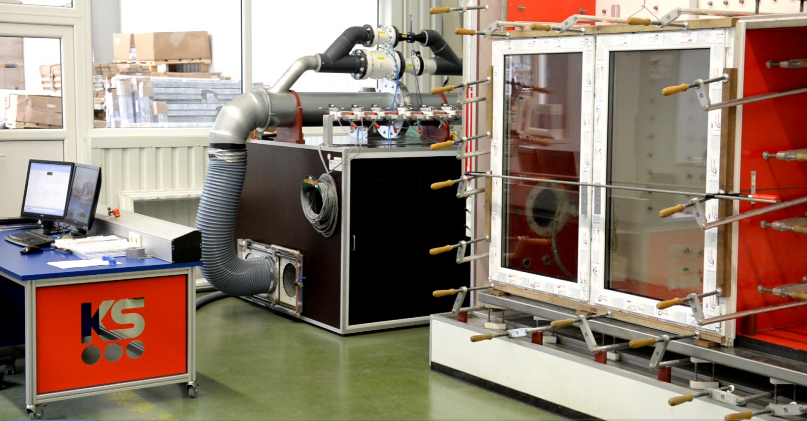 Un autre essai de résistance important pour la fenêtre testée et en particulier pour les ferrures est l’essai de sécurité. L’échantillon est soumis à un cycle unique de pression positive et négative. La valeur de cette pression dépend de la classe atteinte lors de l’essai. Elle est multipliée par 1.5. L’essai permet de déterminer la qualité et la rigidité des ferrures et par la même occasion la résistance de notre fenêtre à la charge du vent.