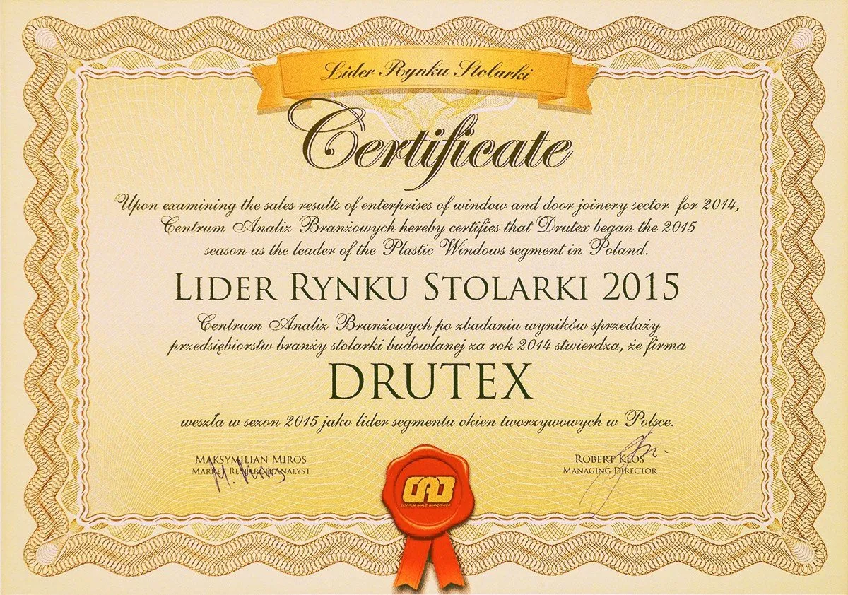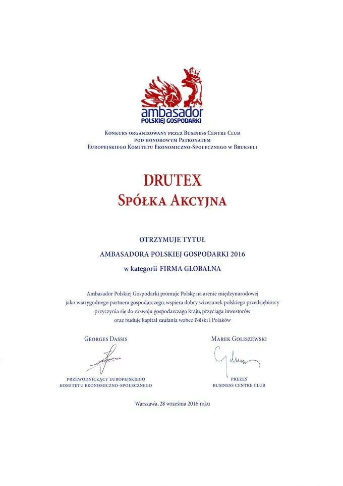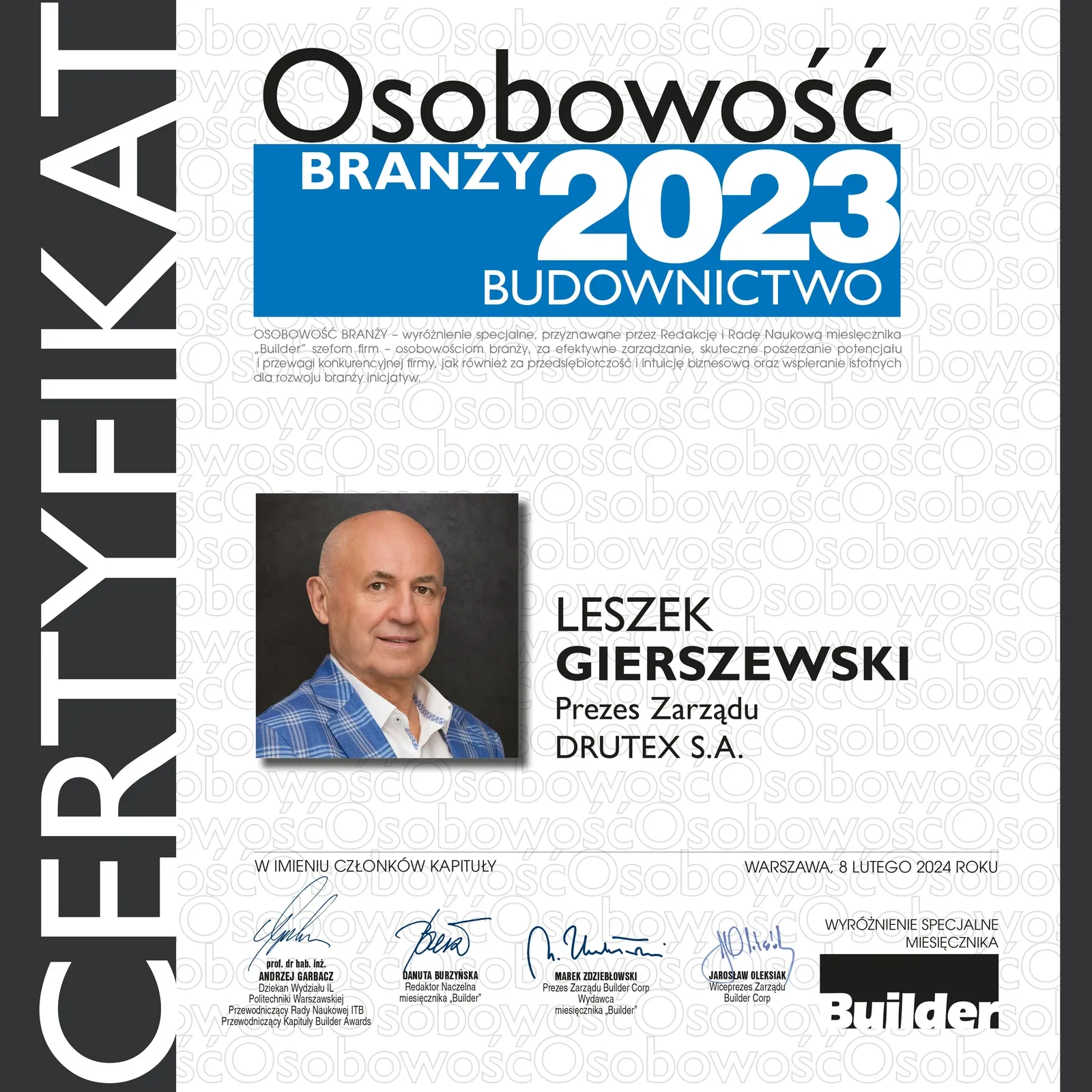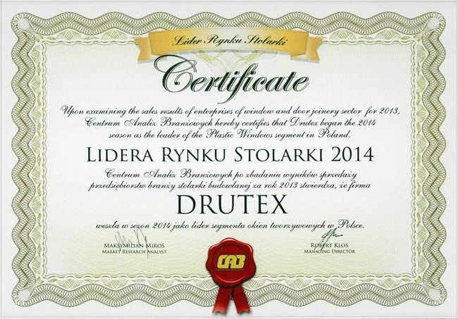 Le développement dynamique de DRUTEX, le leader européen de la menuiserie des portes et des fenêtres, a donné lieu à de nombreux prix et distinctions que la marque a reçus au cours des dernières années, tant au niveau national qu'international.