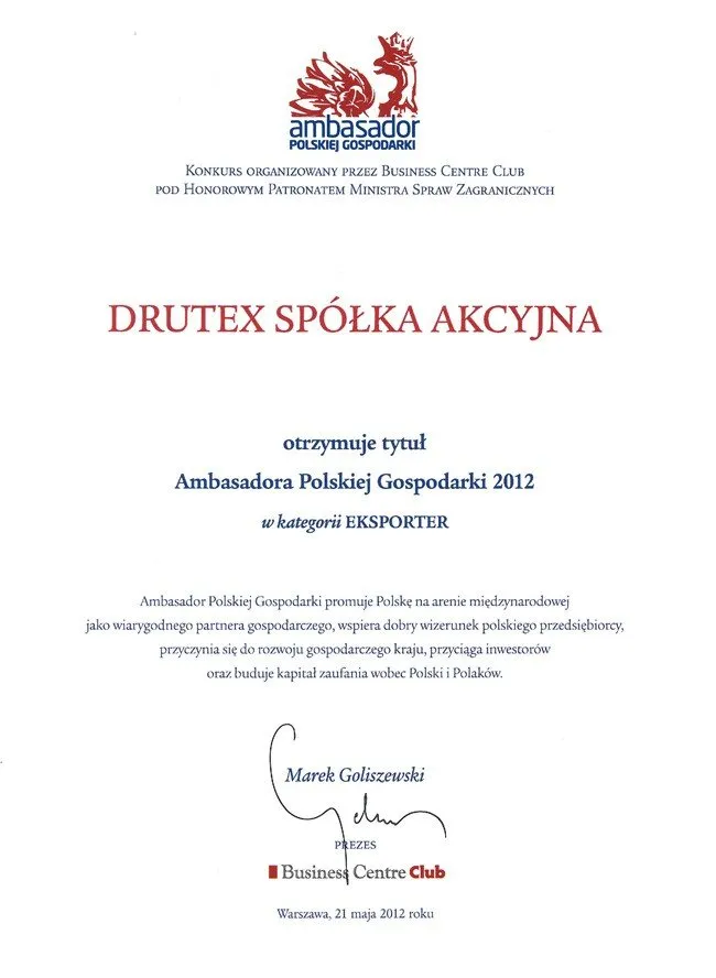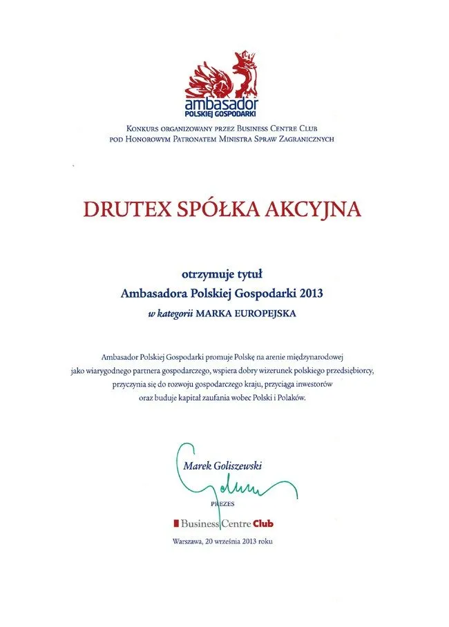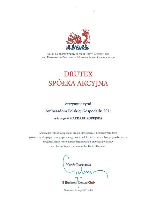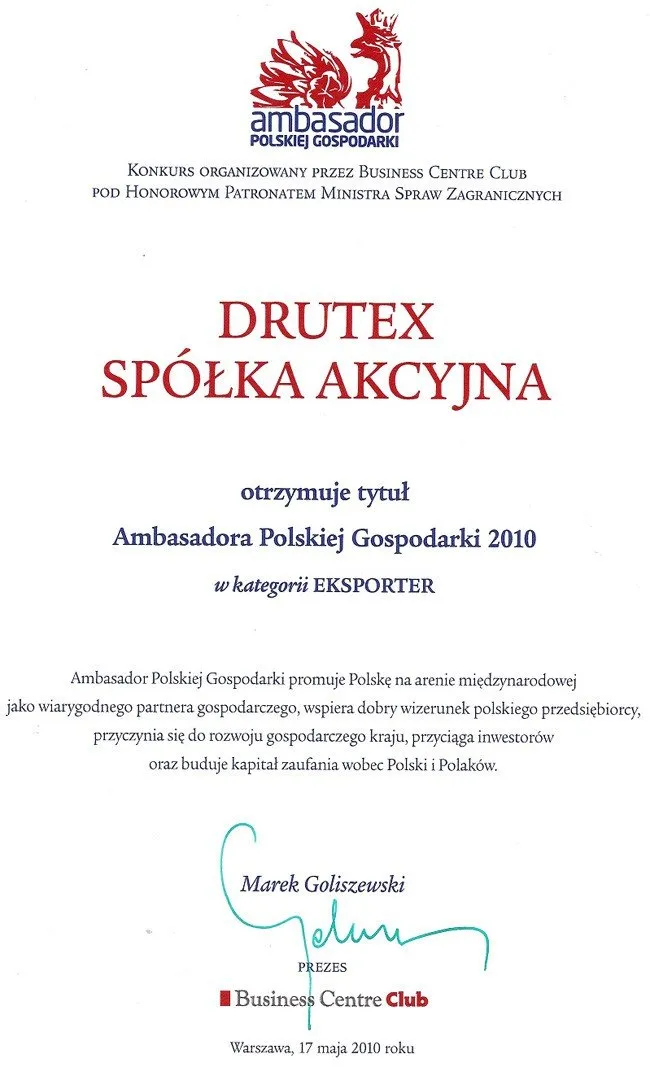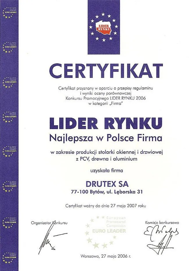 Le développement dynamique de DRUTEX, le leader européen de la menuiserie des portes et des fenêtres, a donné lieu à de nombreux prix et distinctions que la marque a reçus au cours des dernières années, tant au niveau national qu'international.