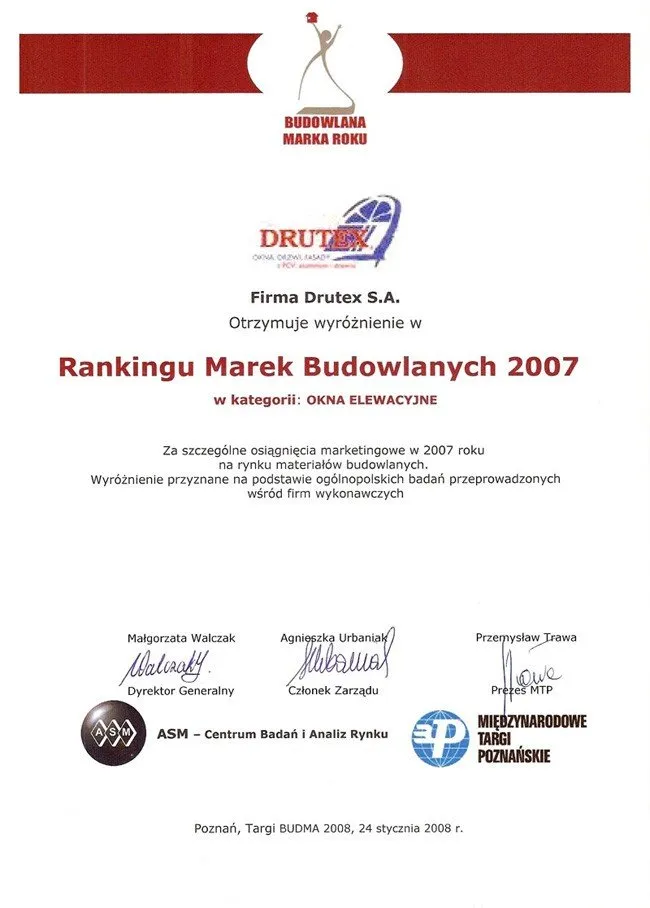 Tout cela confirme que, pour la majorité des clients, DRUTEX fait partie des entreprises et des marques les plus en vue du marché, appréciées pour leur haute qualité et leurs solutions innovantes.